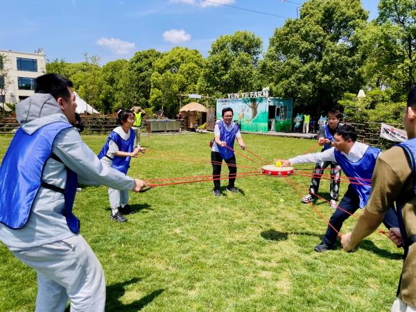 在專業教練的指導下團隊開展了幾項破冰游戲:“高山流水”“聽點數速配”和“抓手指”等小游戲迅速活躍了團隊氣氛,增強了團隊成員間的彼此信任。16名團隊成員隨機分成兩隊,設計隊名、口號和隊旗。“挖煤小能手”和“全年無休隊”等蘊含專業特長和奮發向上工作態度的隊名展現了青年的蓬勃活力。最后一個環節的拓展活動圍繞“團隊融合”與“使命擔當”展開,設置“同心擊鼓”、“無敵風火輪”、“兩人三足”等特色項目。活動中,公司領導與青年員工緊密配合,大家群策群力,既有激烈角逐,也有暖心互助,現場笑聲與掌聲不斷。