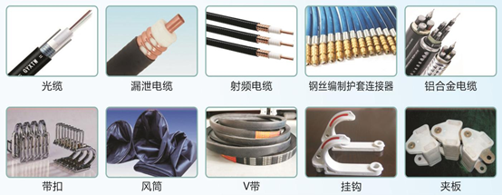 煤礦用阻燃輸送帶、煤礦用管材、V帶、煤礦井下用塑料網假頂帶、滾筒包膠、電纜掛鉤、玻璃鋼制品、橡膠制品、非金屬制品。